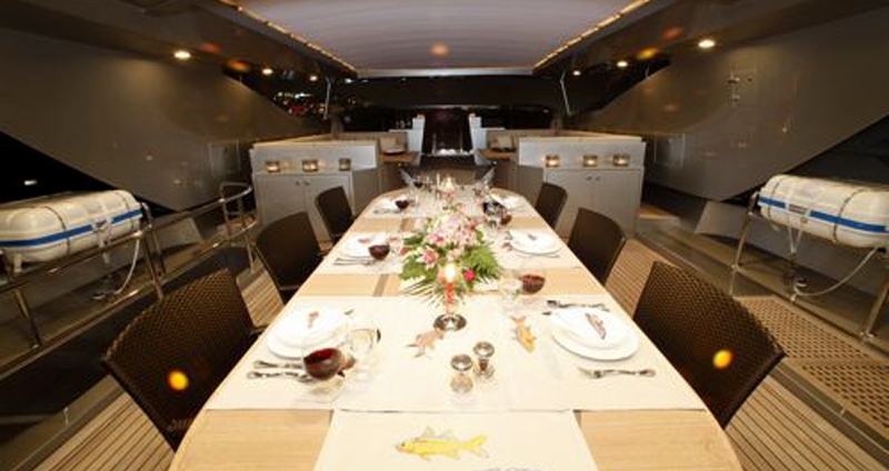 MAIN FEATURES: ~ Alfresco dining ~ Accommodation for 10 guests and 5 crew ~ Large indoor dining table ~ Water toys ~