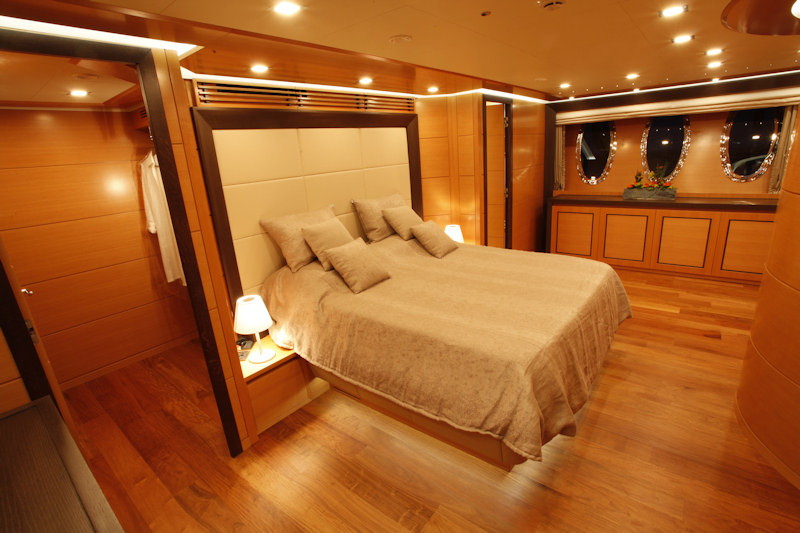 Accommodation is offered to ten guests in 5 cabins, including a full beam master suite, three double and one twin cabins.