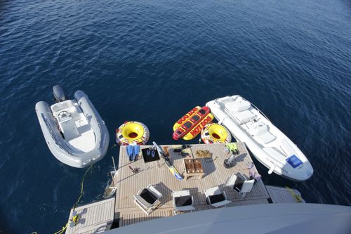 MAIN FEATURES: ~ Alfresco dining ~ Accommodation for 10 guests and 5 crew ~ Large indoor dining table ~ Water toys ~