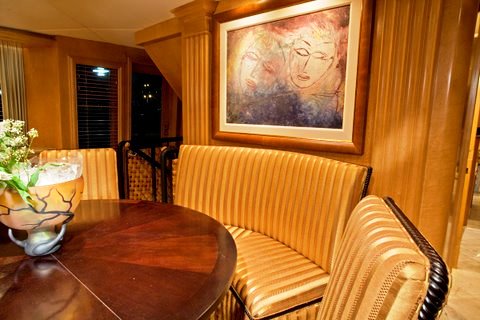 In an open plan style, her dining area is located forward of the salon. The yacht also features a Country Kitchen where guests can observe the chef at work and enjoy the delicious aromas.