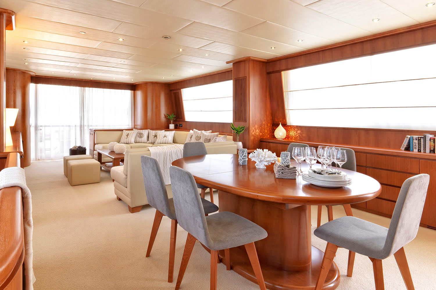 Gourmet food freshly made by the chef in the fully equipped galley, conscientious service from the crew and the finest Italian designed in interior fittings creates an ideal setting for formal dining.