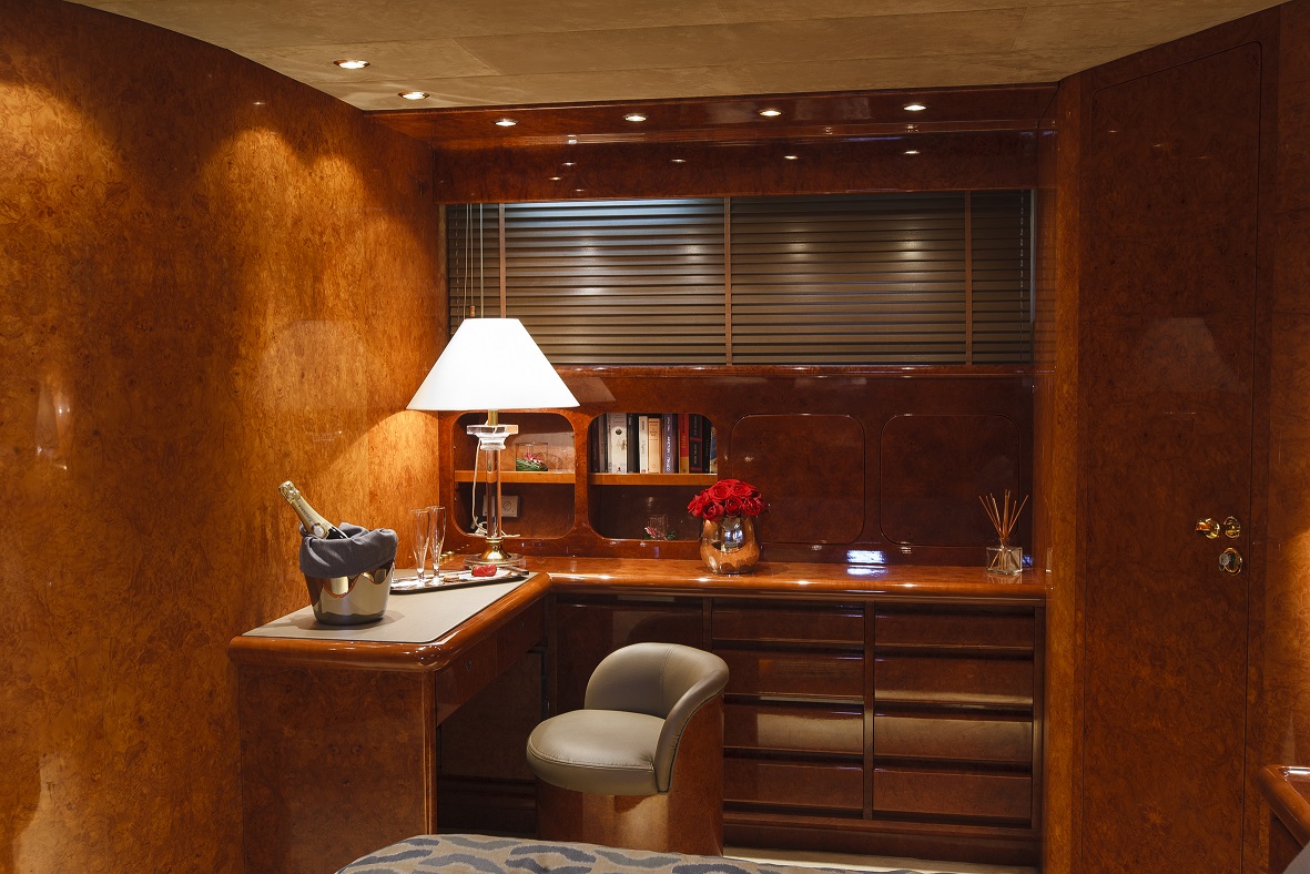 The Cantieri Navali Lavagna – Admiral motor yacht MY WAY is 29,00m (95' 1") in length, was built in 1993 and has since been refitted. She can accommodate up to 8 guests in 4 cabins attended by 5 crew. Motor yacht MY WAY is based in Greece year round and can attain speeds of 26-31 knots thanks to her dual MTU 2300hp engines.