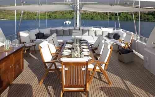 This space also boasts impressive windows to provide panoramic views of the beautiful locations outside. While dining, you will be attentively served by your professional crew, via the adjoining commercially appointed galley.
