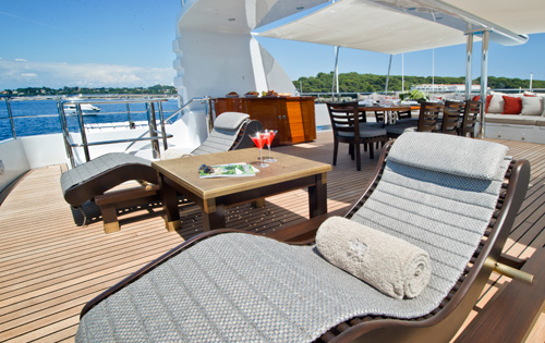She also provides state of the art electric entertainment systems and worldwide communications equipment to ensure that charter guests can stay in touch the world, or escape, to whatever degree they desire.