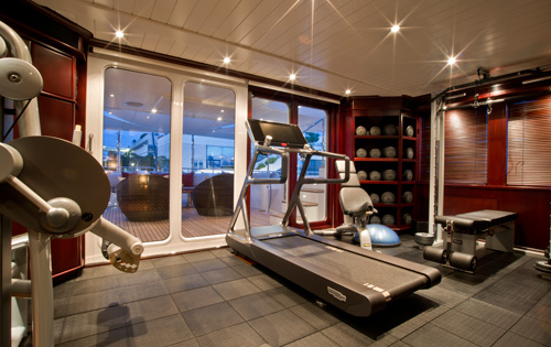 Gym - Technogym equipment includes hand weights 4 to 20 obs. Weight bench,Running machine, Bench press, vertical traction, leg extensions and fitness balls.