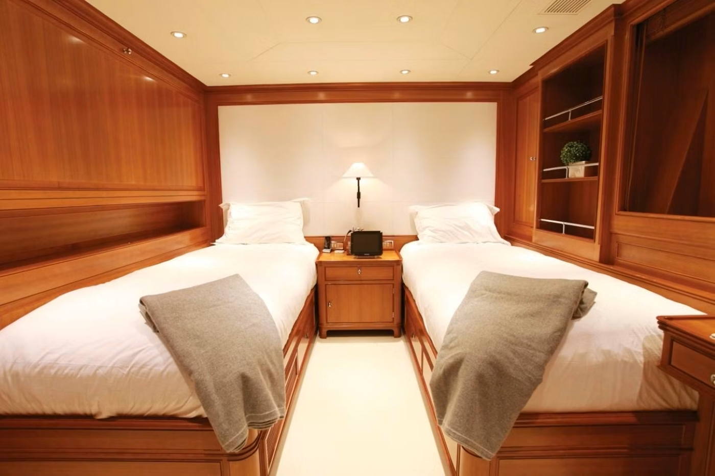 She features 5 beautiful Cabins including 2 cabins with Pullman berths and a full-beam master suite with a sitting room that can be made into a private stateroom with its own facilities allowing for 10-12 guests.