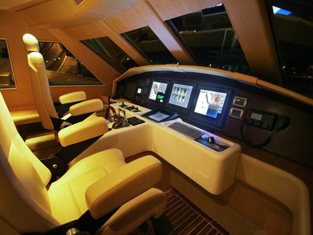 On the Bridge Deck aft there is a semi-shaded area with a large Spa Pool and sun pads, along with BBQ, ice-maker and access to the aft deck and sun deck. There is also access the bow area which has a Solarium with comfortable ...