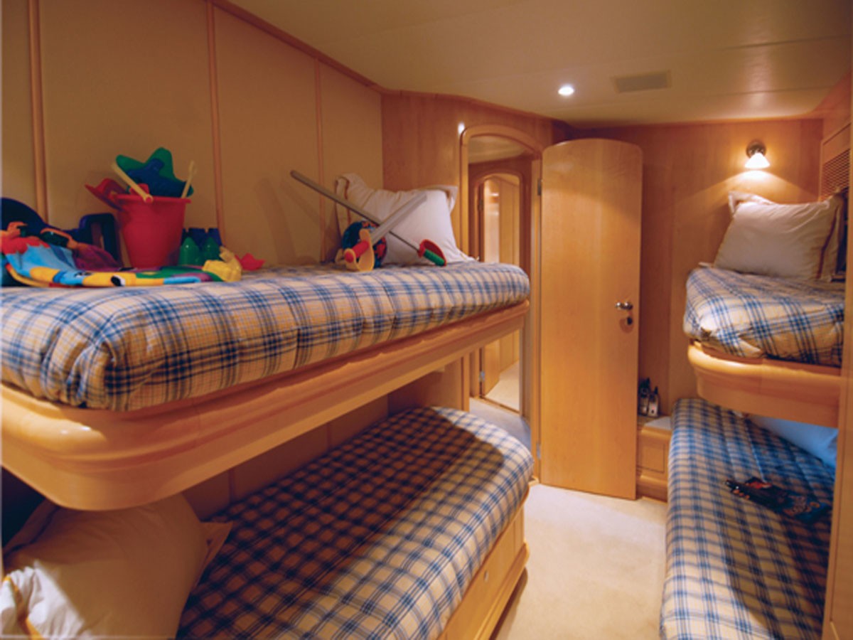 There is a reading chair to starboard, as well as a walk-in closet forward to port. The en-suite for this cabin is situated forward to starboard with head and bidet, plus an oversized stall shower and sink.