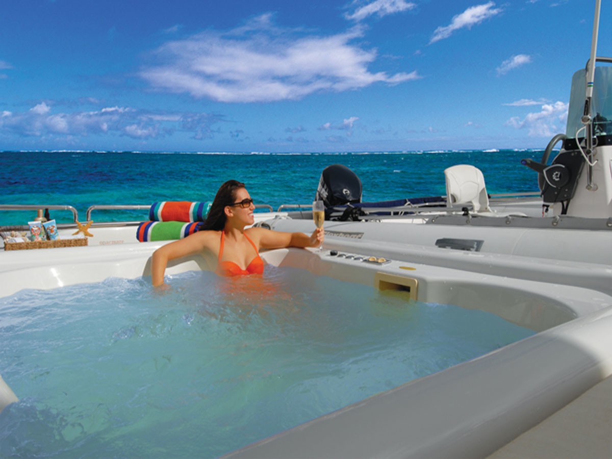 The remaining cabins are located below deck and include 2 mid-ship queen cabins to Port and starboard with lockers, drawers, sofa and en-suite head with oversized shower, head and sink, and a twin cabin to port with 2 upper and lower built-in bunks accommodating up to 4 children.