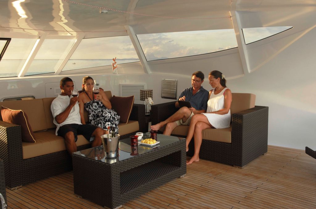 Although JAMBO is only 80 feet long, she has a 30ft beam and the overall feeling and space of a much larger vessel.