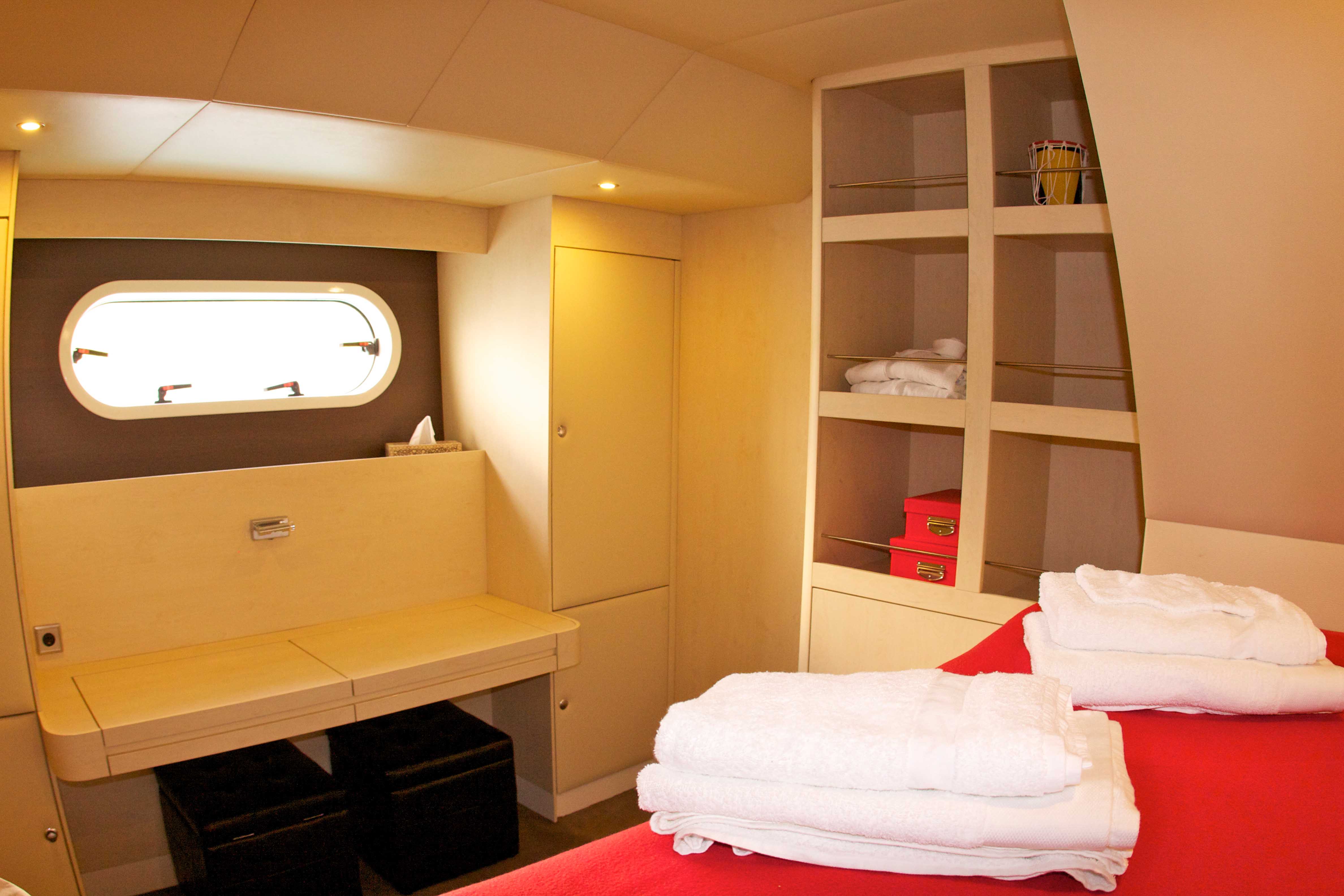 Powercat Motor Yacht JAMBO offers 8 guests comfortable accommodation in 3 doubles and 1 twin cabin. Catamaran JAMBO has snorkelling gear, windsurfing, and a kayak. JAMBO can also offer diving cruises, they have diving gear onboard as well as a AQUALUNG diving center with BAUER compressor 20m3 /hour.