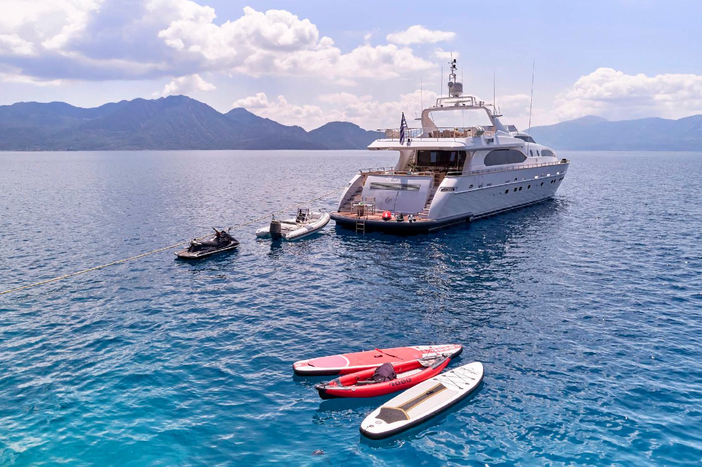 Equipped with a stylish Italian interior, various water toys, and the requisite yachting comforts HELIOS makes for a fantastic Eastern Mediterranean yacht charter.