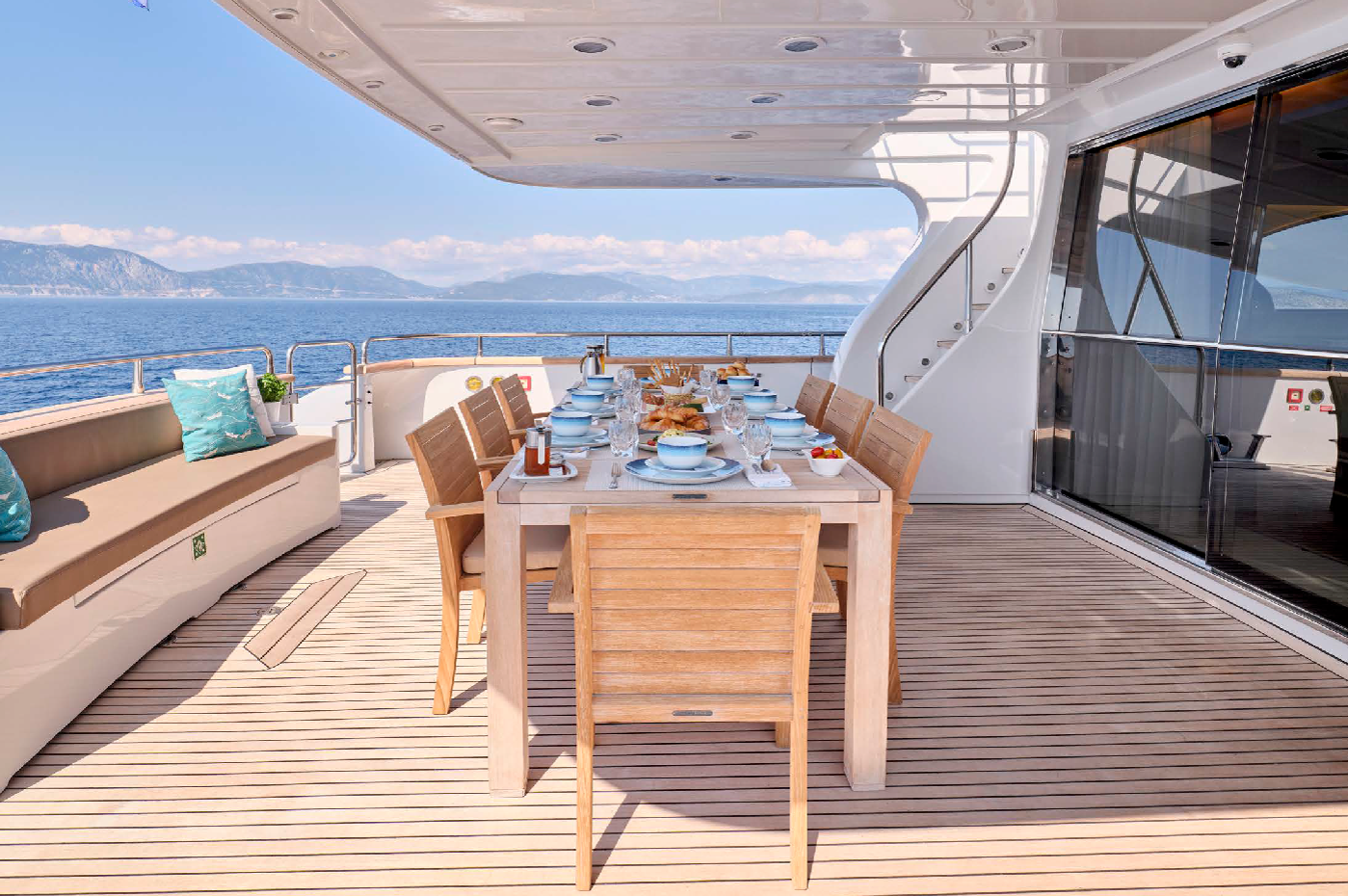 Yacht HELIOS’ saloon is structured as a large “open space” and is divided into living and dining areas, as connected to a well equipped galley on the main deck. The Falcon’s cabins are prestigious and extremely ...