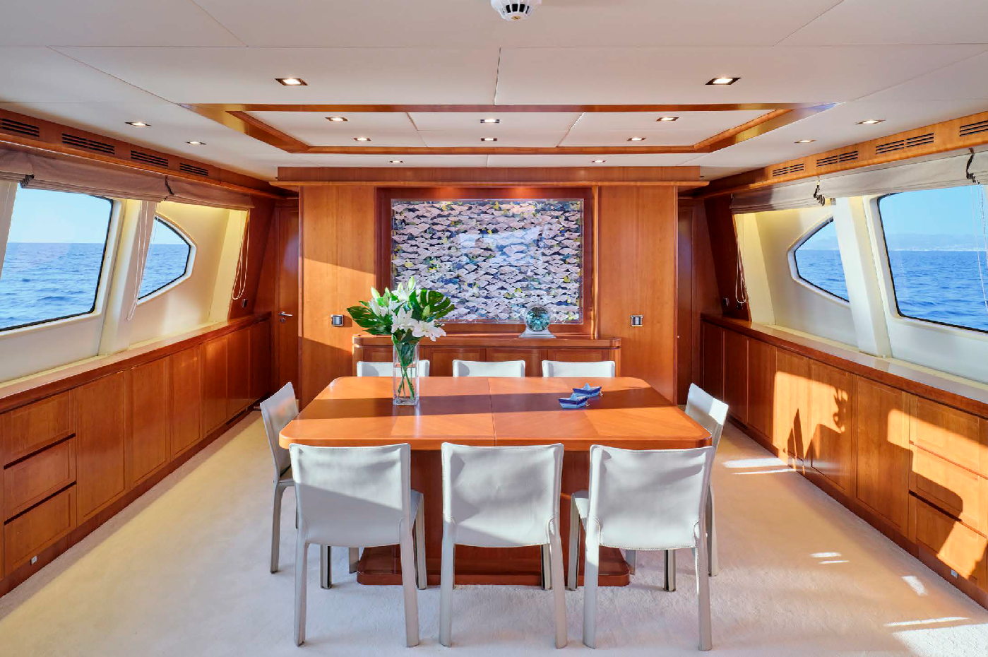 Yacht HELIOS’ saloon is structured as a large “open space” and is divided into living and dining areas, as connected to a well equipped galley on the main deck. The Falcon’s cabins are prestigious and extremely ...