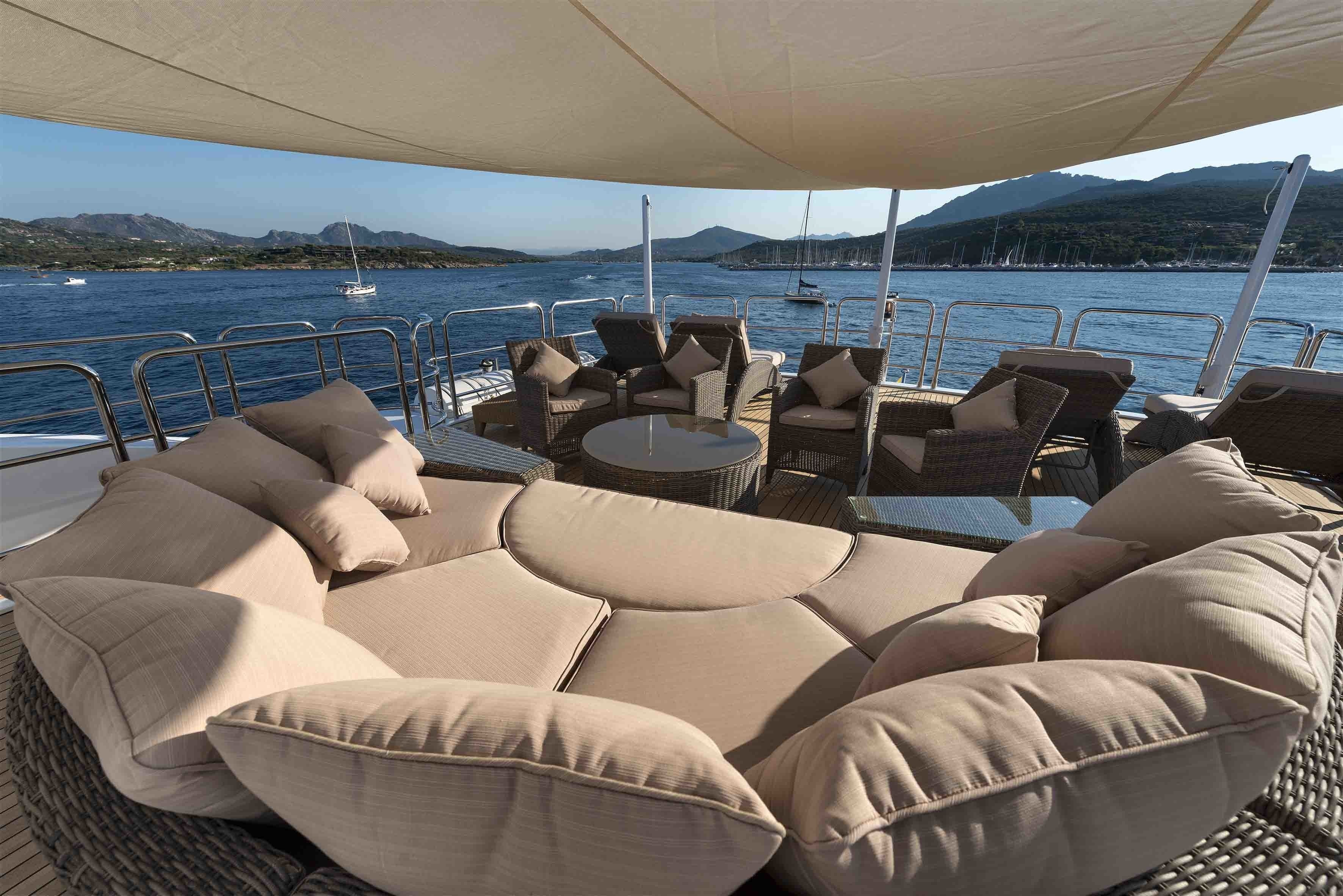 Stefano Natucci designed her striking exterior profile. The interior spaces were created by Studio Massari. LUMIERE can accommodate 12 charter guests in 6 cabins and has a crew of 13 on board, to ensure everyone has a fantastic holiday, full of adventure, fun and relaxation.