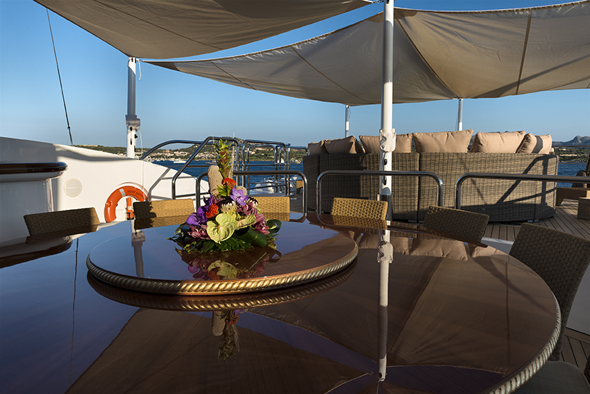 Stefano Natucci designed her striking exterior profile. The interior spaces were created by Studio Massari. LUMIERE can accommodate 12 charter guests in 6 cabins and has a crew of 13 on board, to ensure everyone has a fantastic holiday, full of adventure, fun and relaxation.