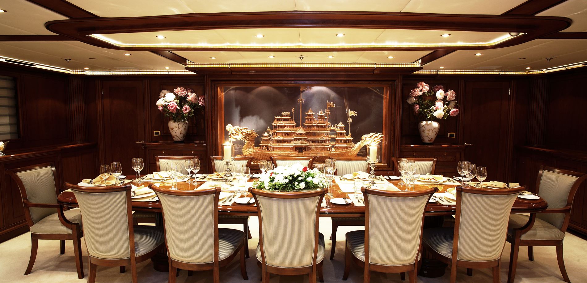 Her impressive salon has 2 comfortable sitting areas, a grand piano and a formal dining table for 12 guests. Behind the dining table is a magnificent sculpture of the legendary Dragon Boat. This masterpiece of mythological art ...