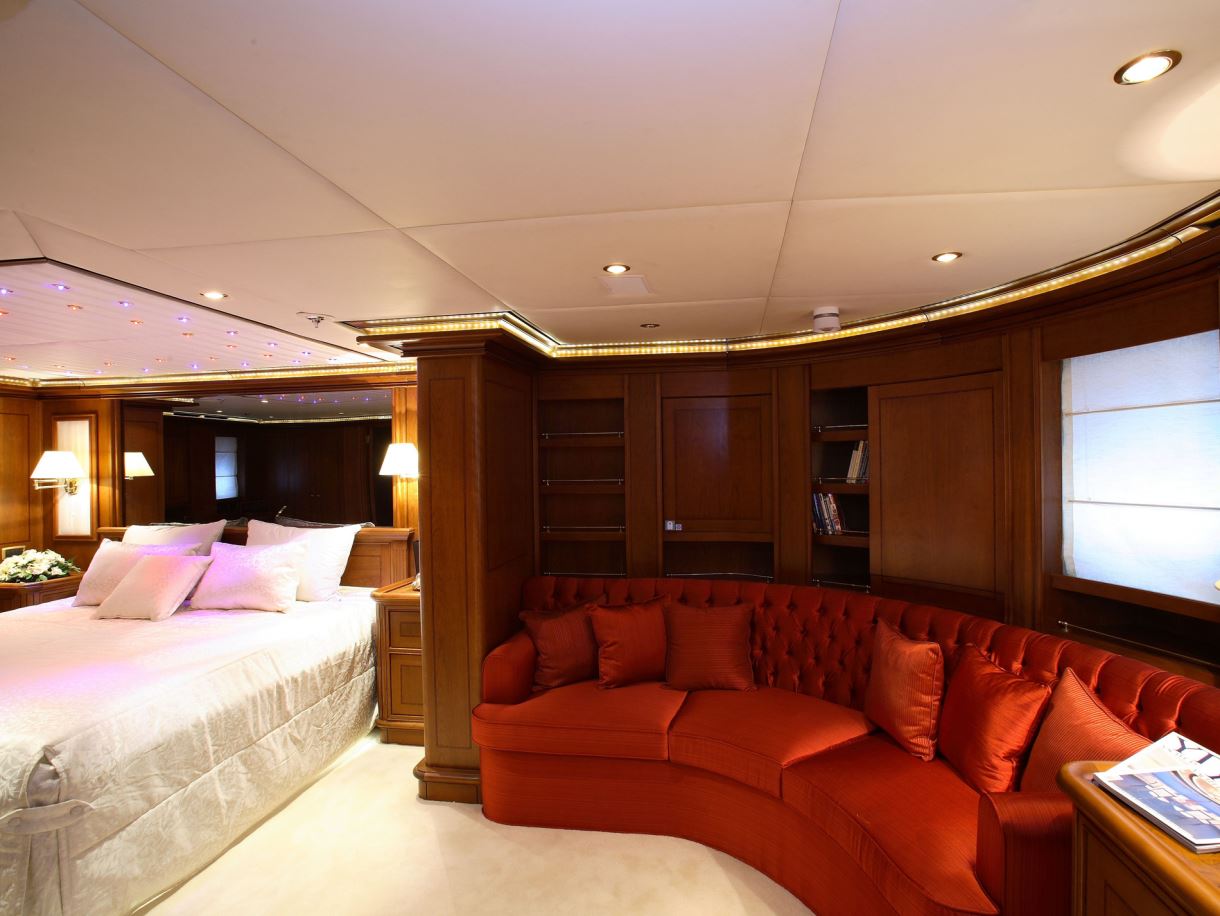 Her elegant sundeck offers 135 square metres of teak decking and features uncluttered views, sun loungers and a spa pool for guests to cool off in. This area is perfect for a party or event at night for up to 100 guests.