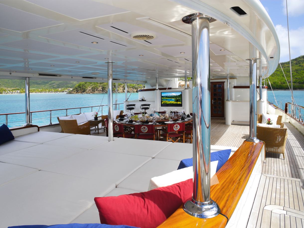 LORETTA has an impressive exterior with spacious decks and fine fittings. The outdoor areas include an expansive aft deck which is an enormous 110 square metres of space for al fresco dining and lounging.
