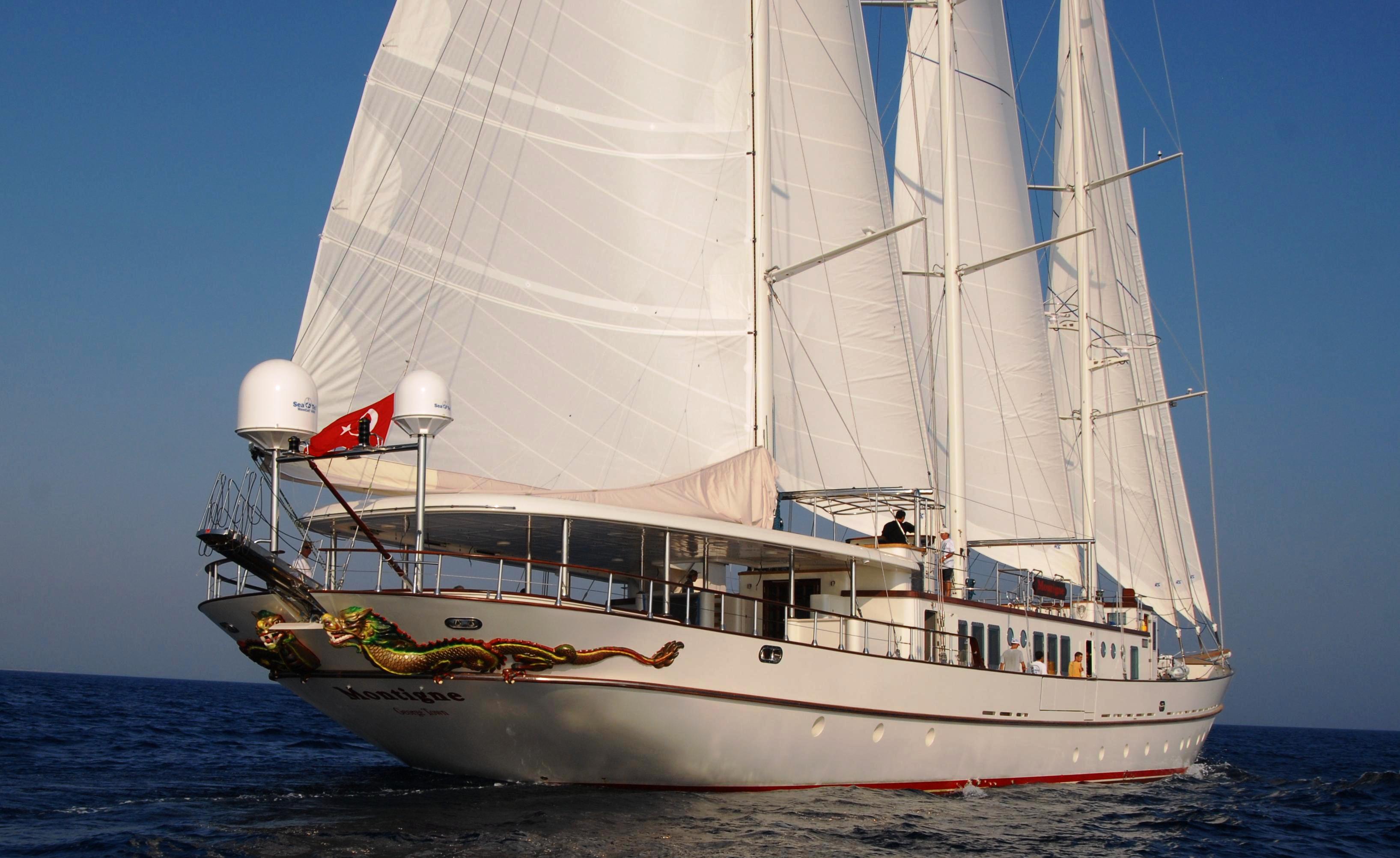 Sailing yacht LORETTA (ex Montigne) provides yacht charters in The Mediterranean, South Of France, Directory, Western Mediterranean, St Tropez, St Jean Cap Ferrat, Sicily, and Sardinia.
