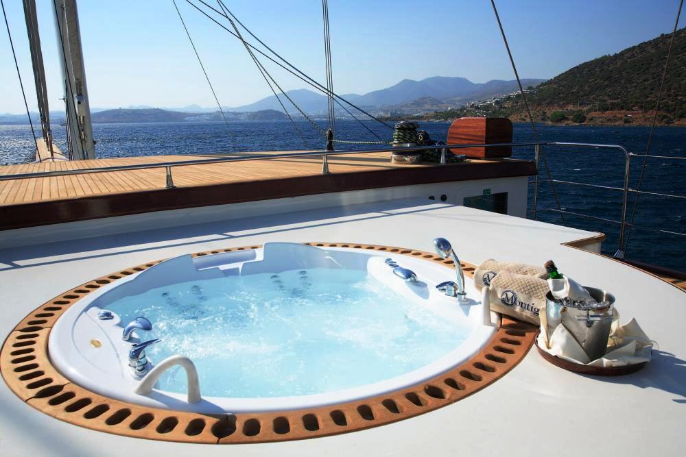 This area is perfect for a party or event at night for up to 100 guests. The sundeck can be partially covered with a bimini if guests require shade.