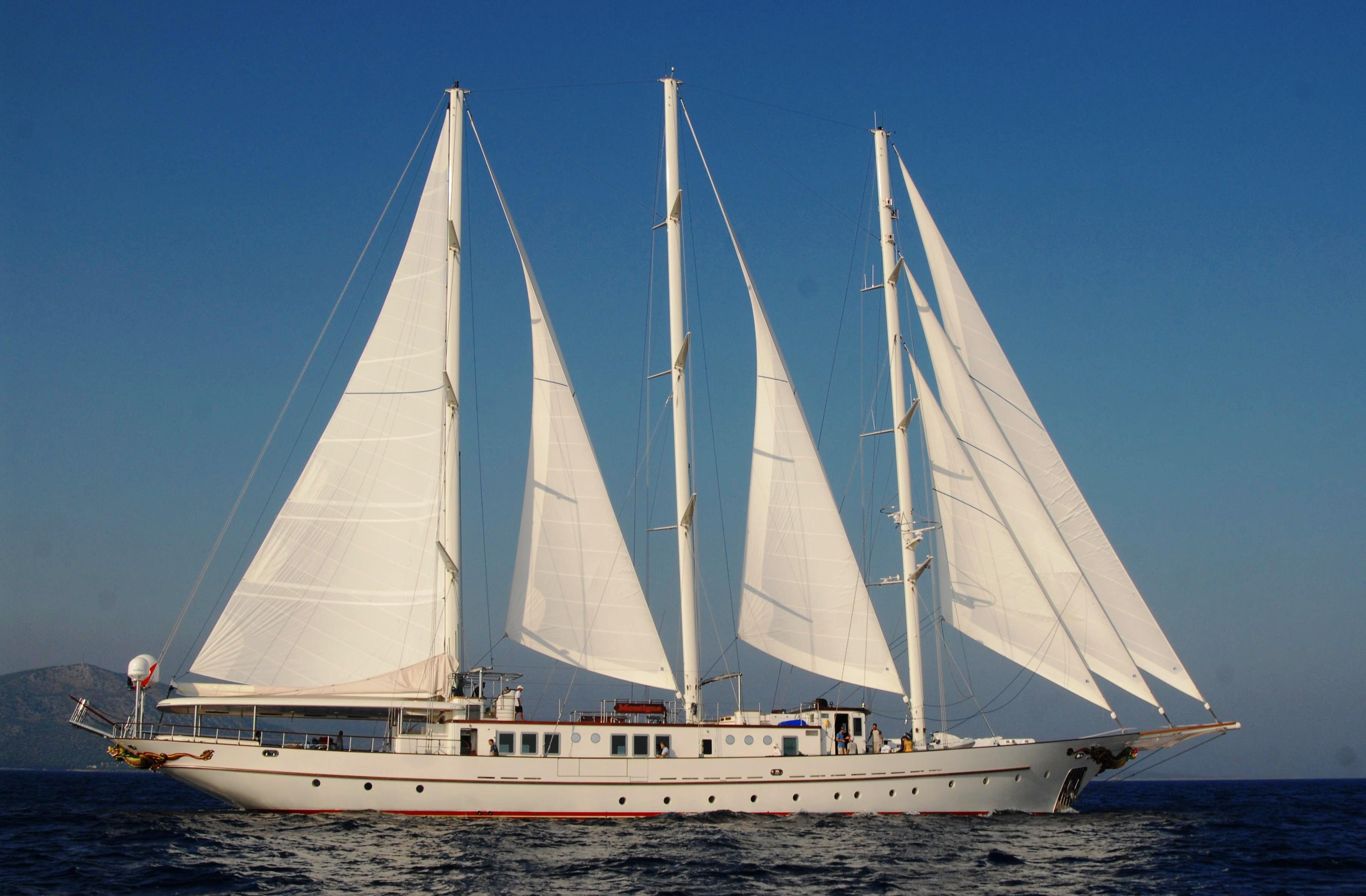 Sailing yacht LORETTA is 57,00m (187') in length and was built by Aegean Yachts in 2009. She can accommodate up to 12 guests in 6 spacious and luxuriously appointed staterooms and is the ideal yacht for events thanks to her enormous deck spaces and the ability to host 100 + guests at the quay.