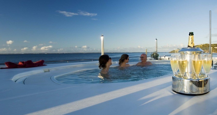 Champaign Glass: Yacht ELEGANT 007's Jacuzzi Pool Pictured