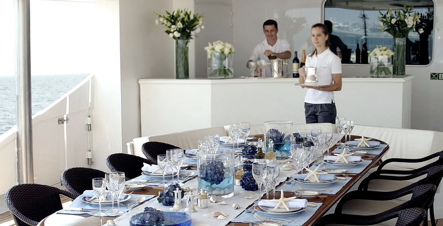 Waiting Crew: Yacht ELEGANT 007's Sun Deck Photograph