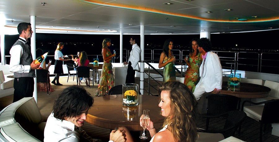 * A birthday party in the bay of Beaulieu for 100 guests – entertainment provided by Brian Adams….that was some evening.
