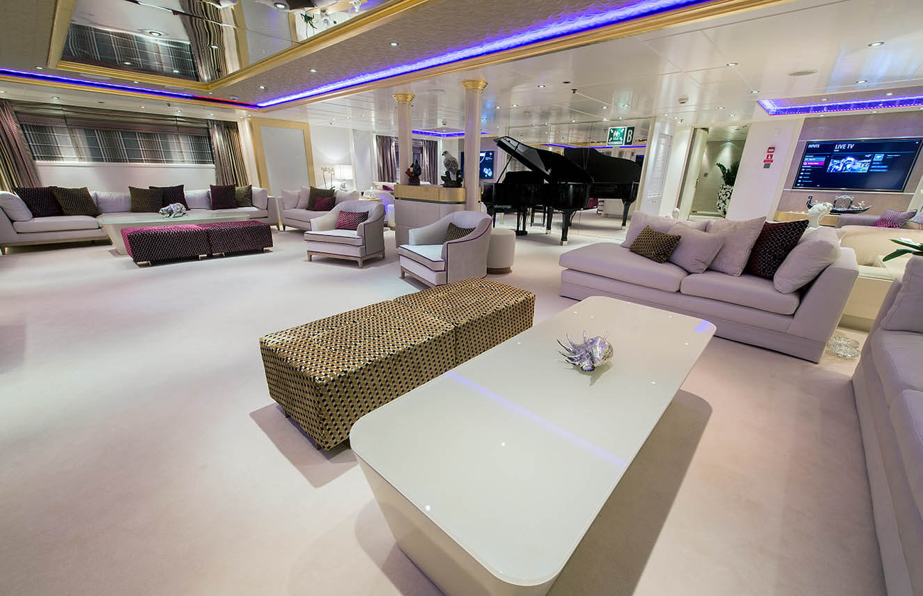 NOTABLE FEATURES: ~12 person Spa Pool on Sun Deck, ~Fully equipped gymnasium, ~Beauty Salon, ~Massage Room, ~Sauna, ~Home Theatre ~Aft Swimming Platform ~Huge sundeck ~Passenger lift ~Business centre ~Nice selection of water toys
