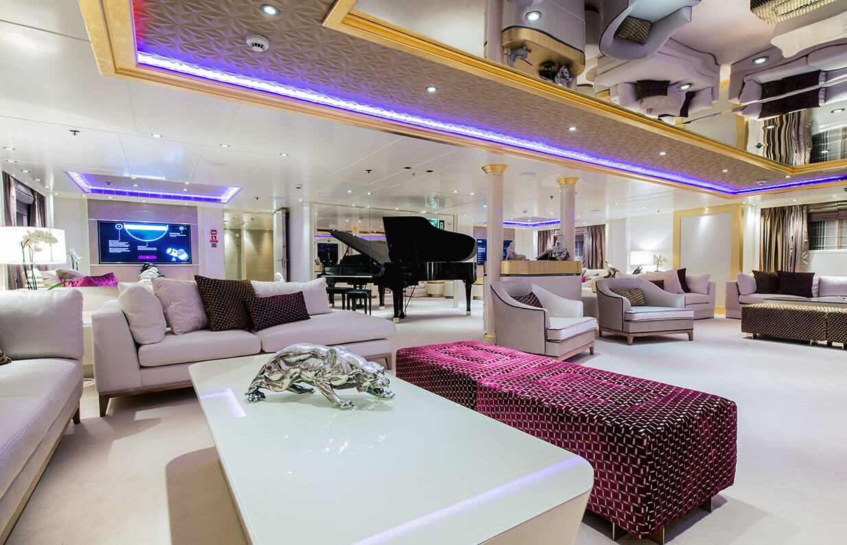NOTABLE FEATURES: ~12 person Spa Pool on Sun Deck, ~Fully equipped gymnasium, ~Beauty Salon, ~Massage Room, ~Sauna, ~Home Theatre ~Aft Swimming Platform ~Huge sundeck ~Passenger lift ~Business centre ~Nice selection of water toys