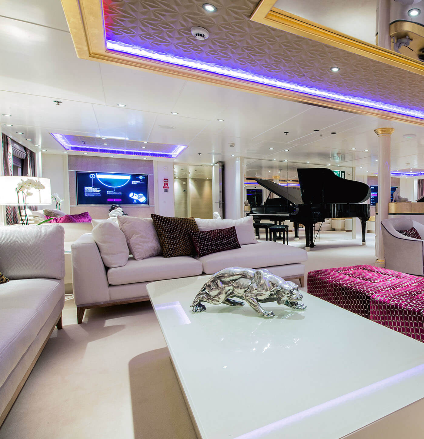 NOTABLE FEATURES: ~12 person Spa Pool on Sun Deck, ~Fully equipped gymnasium, ~Beauty Salon, ~Massage Room, ~Sauna, ~Home Theatre ~Aft Swimming Platform ~Huge sundeck ~Passenger lift ~Business centre ~Nice selection of water toys