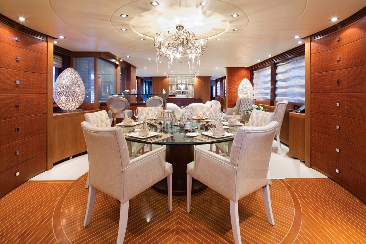 The main saloon, covered aft saloon and dining room are all equally breathtaking, not to mention the huge ...