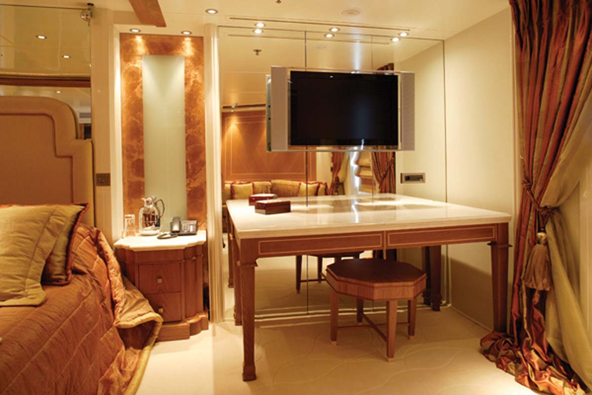 All staterooms have en suite bathroom, a spacious seating area and entertainment centre with satellite TV, DVD and Dolby surround sound. All staterooms can be configured as either double or twin-bedded.