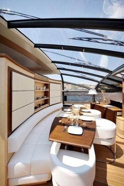 Luxury Baia motor yacht ASTRO has a great array of extra onboard including the following Tenders and Toys: A 4.5 m Tender Castoldi with jet engine 125 hp, Water skis, Wake board, Wind surfing, and Snorkelling and fishing equipment. Communications onboard include Int./Ext.