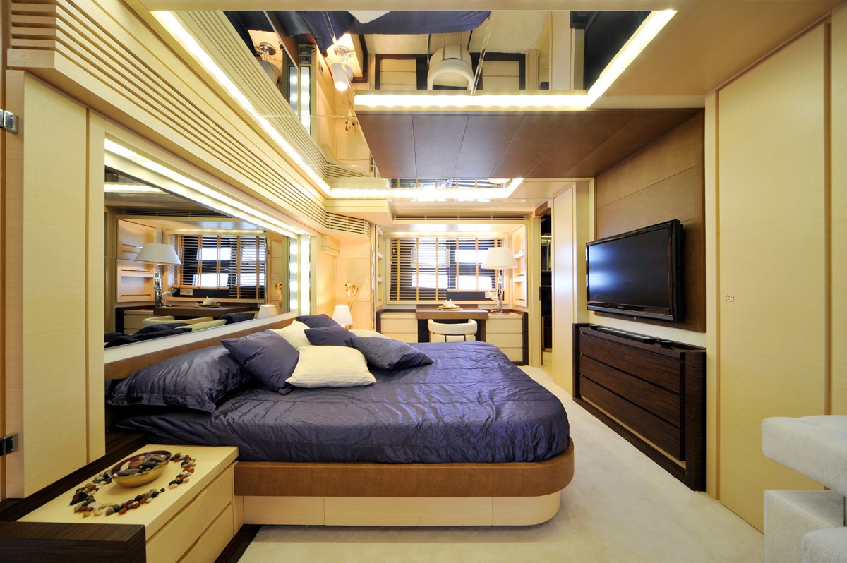 HI-Fi System in all cabins, LCD TVs in every cabin connected to wide range of Satellite TV Channels ant the DVD player in saloon, Aft Sunshade, Fibreglass swimming platform with teak covering, Hard Top with electrical opening sun ...