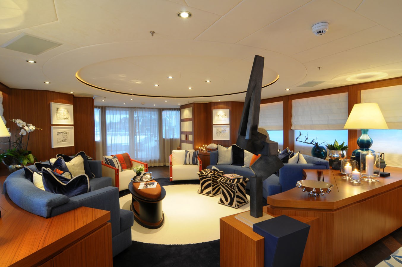 The dining area has a large table seating up to 10 guests. The sky lounge located on the Bridge deck leads out to an open aft area with built-in seating and teak table’s ideal for cocktails, plus a 10-person teak dining table ...