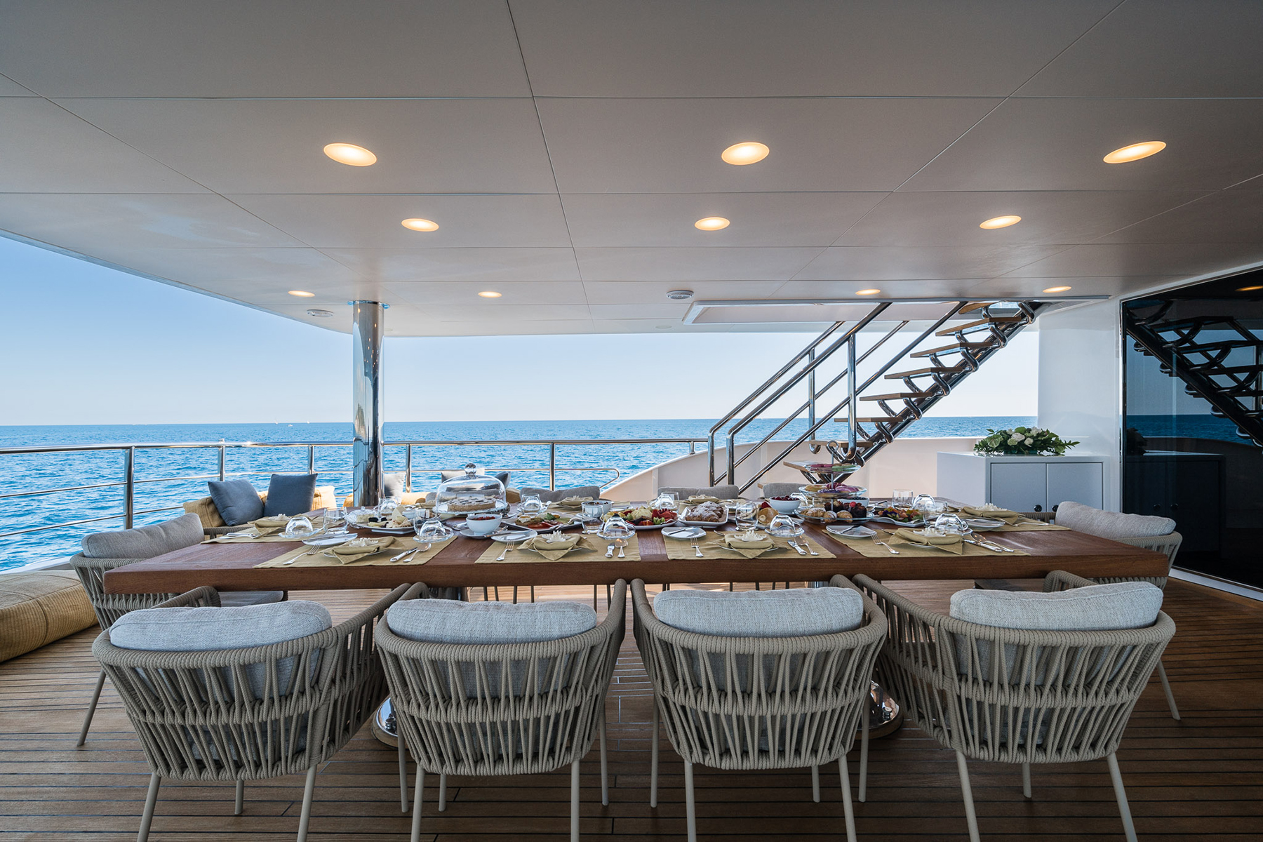 NOTABLE FEATURES OF R23: ~ Luxury living spaces ~ 60 sqm sundeck ~ Great for hosting events ~ Carries 100 guests while in-port ~ Gym ~ Jacuzzi ~ Alfresco dining ~ Exterior lounge area ~ A/V entertainment system ~ Swim toys ...