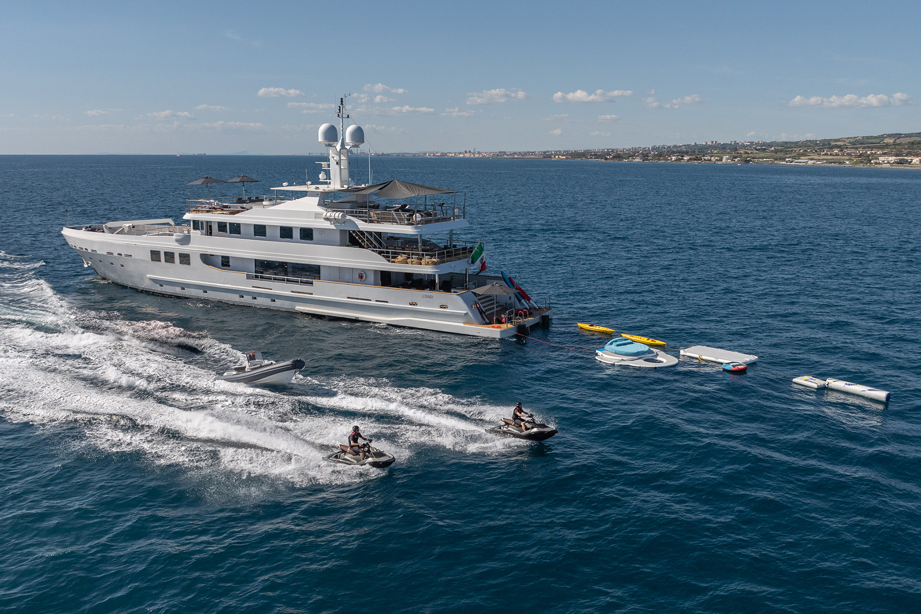NOTABLE FEATURES OF R23: ~ Luxury living spaces ~ 60 sqm sundeck ~ Great for hosting events ~ Carries 100 guests while in-port ~ Gym ~ Jacuzzi ~ Alfresco dining ~ Exterior lounge area ~ A/V entertainment system ~ Swim toys ...