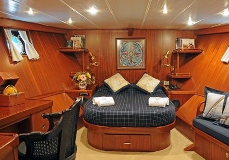 Sailing yacht OFELIA can accommodate 12 guests in 6 guests cabins. The master cabin, called “ST Malo” has a king size bed, a sitting area, adjoining office and ensuite bathroom. The VIP cabin is called “Istanbul” and has an ensuite bathroom. Shanghai and St Petersburg are the double Cabins with ensuite bathrooms.