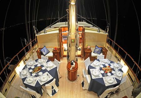 Classic sailing yacht OFELIA has a vast deck area that affords a variety of living, dining and relaxation opportunities, you are able to choose a private and peaceful corner, or congregate in a comfortable social environment.