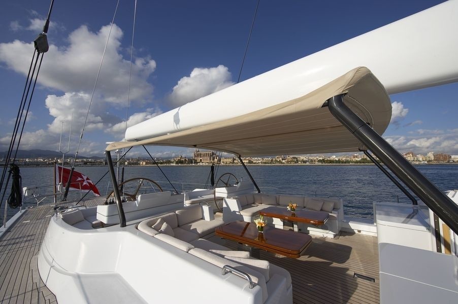 Sailing yacht NEPHELE received a new mast and new North sails in 2009 and is well maintained. Charter yacht NEPHELE has a light and spacious salon with a large L shaped leather couch and dining table to the port side and a couch for lounging lining the starboard side.