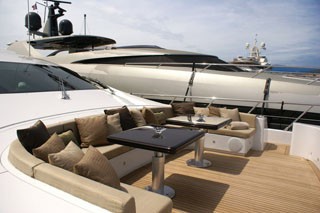 Motor yacht VOYAGE also has generous outdoor spaces from her ...