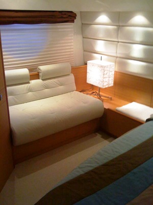 Amidships there is a twin cabin with ensuite and a smaller 4th cabin available only for family groups with child or nanny. The 4th cabin is shares the same bathroom of the twin cabin. There is a 17” plasma screen TV in each cabin.