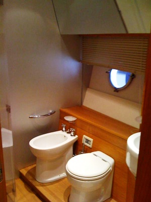 Her Master cabin aft features a sofa, vanity and ensuite bathroom with shower and bidet, her VIP cabin forward also has an ensuite with bidet. Amidships there is a twin cabin with ensuite and a smaller 4th cabin available only for family groups with child or nanny. The 4th cabin is shares the same bathroom of the twin cabin.