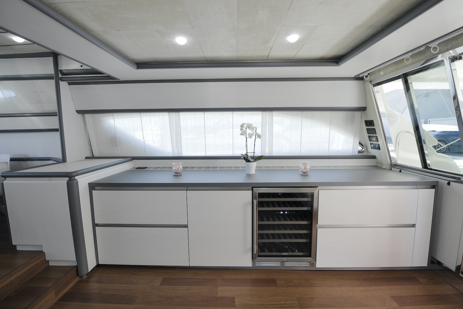NOTABLE FEATURES: Fast hull design ~ Contemporary stylish interior ~ Shaded aft deck ~ Extended swim platform ~ Large sundeck ~ Wi-Fi