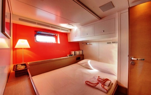 Charter sailing yacht SPIIP can accommodate 6 guests in 3 cabins with ensuite bathrooms. The huge master cabin is located aft. The 2 guest’s cabins are located on each side of the deck salon. There is one double cabin and a convertible cabin that can either have a double bed or two twin bed configuration as seen in the photos.