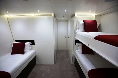 The natural light combined with pale coloured woods, light surfaces and interior decor produces a bright, modern feel. All furnishings and fittings are provided by the Italian manufacturer Cassina and kitchen and galley equipment by Schiffini.