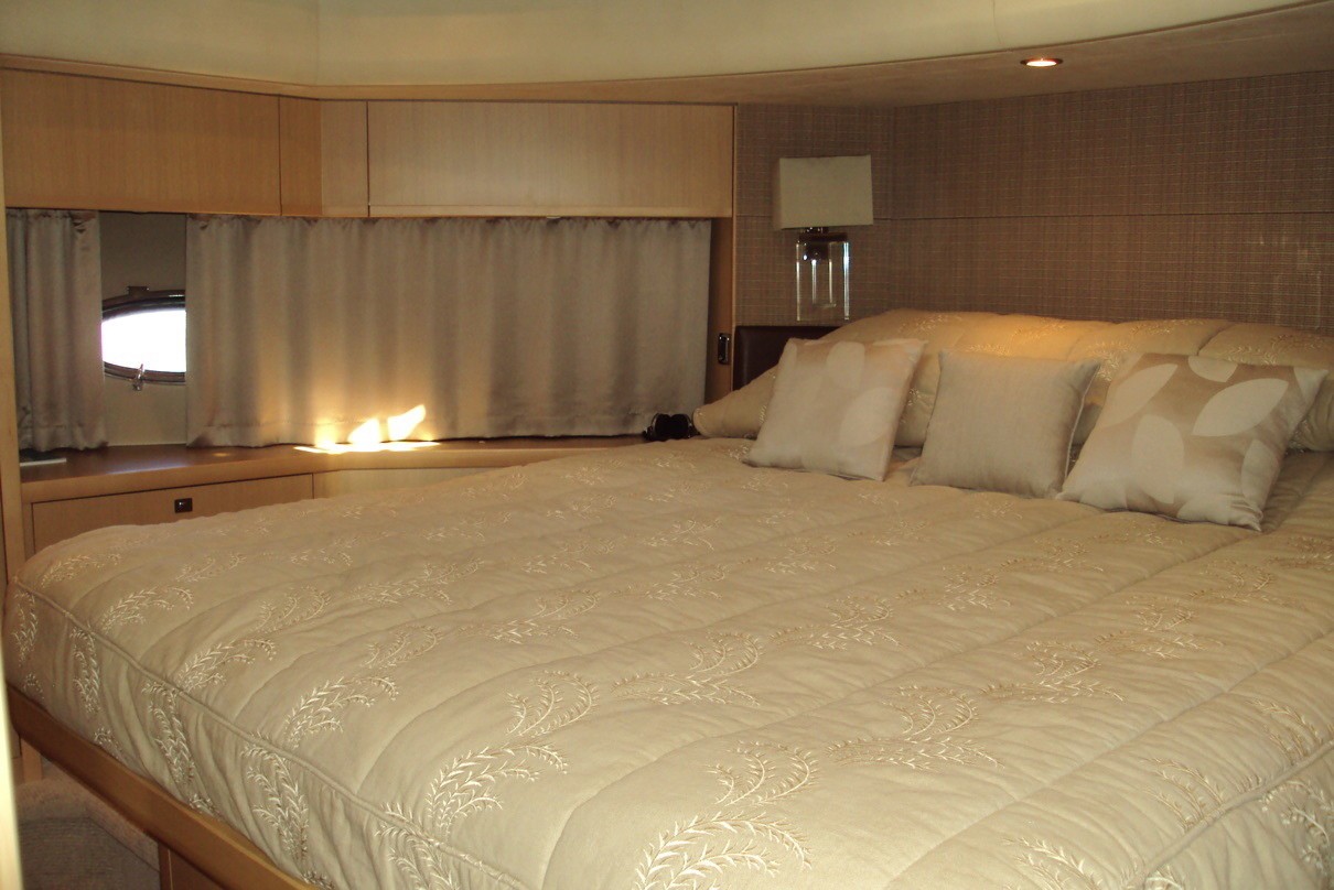 Overnight accommodation onboard motor yacht BAGGIO is situated on the lower deck and includes a full beam owner’s stateroom amidships, complete with a walk-in wardrobe and an en-suite bathroom. There is also a VIP stateroom and a twin cabin.