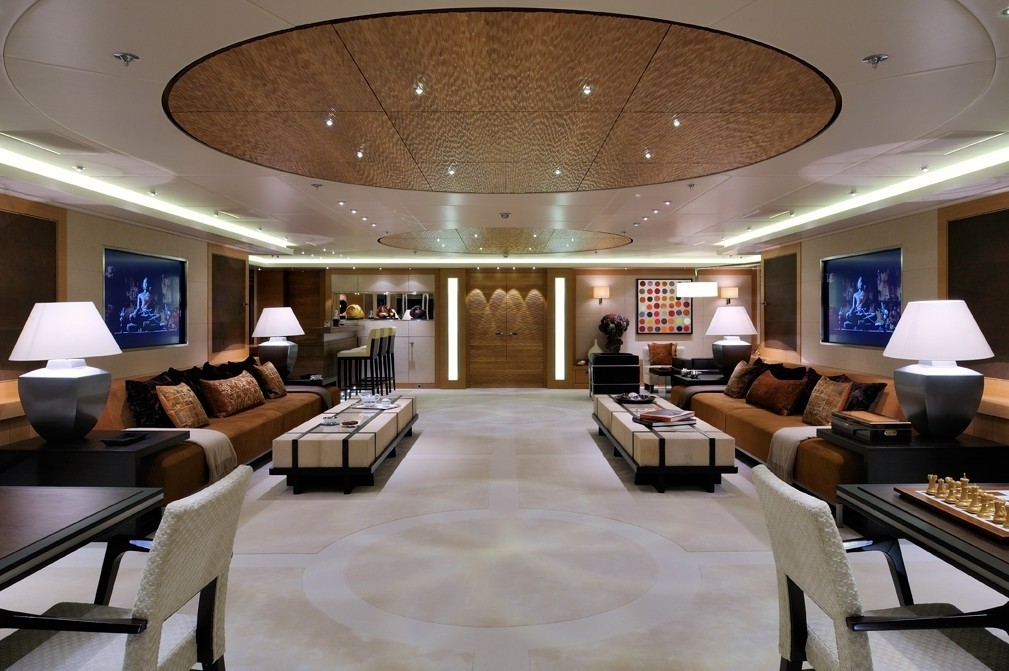 Upper deck saloon is an engaging open plan spacious lounge and bar area fitted out with game tables and two 61-inch HD flat screen TV's.
